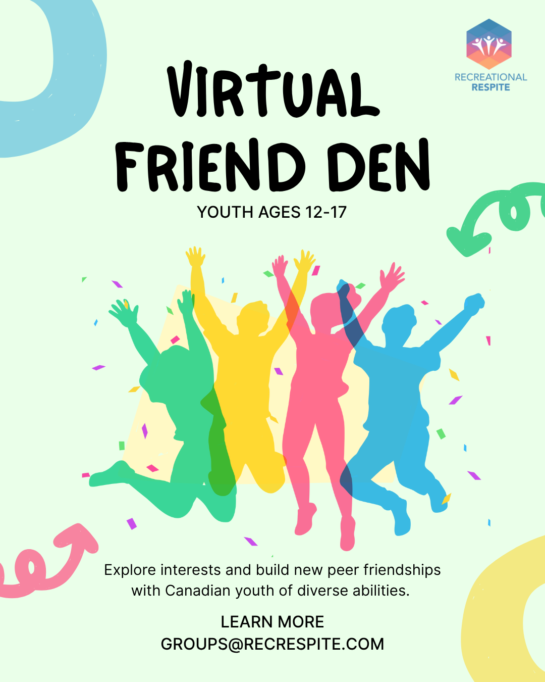 Our community just keeps growing, and we’re so excited to respond to your requests to bring back our virtual youth programs! Canadian youth of all abilities are invited to our virtual Friend Den, offered every Tuesday from 6:30-7:30pm ET.